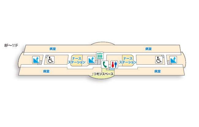 | 11F-8F | 病室 | ||||