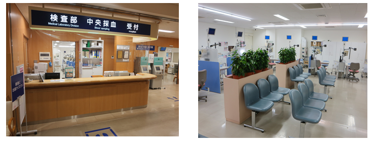 年より採血予約制を導入しています。採血は個別に仕切られた採血台でプライバシーに配慮しています。患者さんごとに手袋交換や採血枕シートを交換し、感染対策も整っています。ご気分の悪くなった方にはベッドも設備されており、安心安全な採血を受けれるよう配慮しています。
