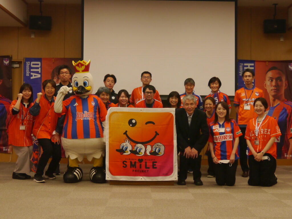 新型コロナウイルスの影響により長らく中止しておりましたが,アルビレックス新潟様およびえがお応援団等の皆様よりご協力いただき,今回が7回目の開催となります。